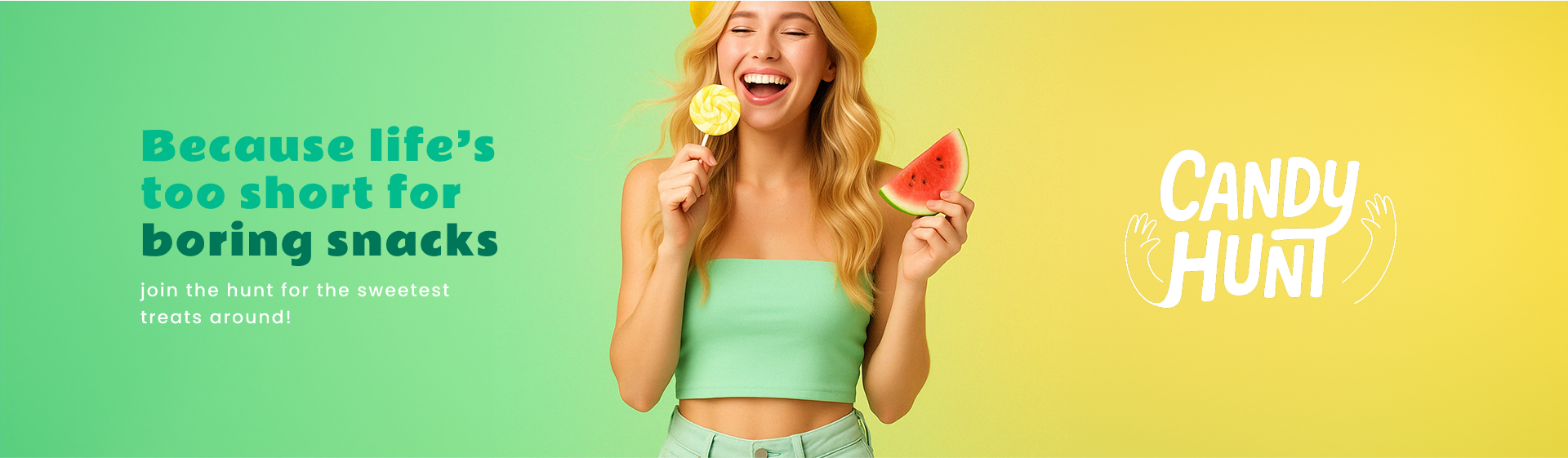 Bij Candy Hunt draait alles om plezier, kleur en een vleugje magie. Wij zijn jouw online snoepwalhalla waar elke bestelling voelt als een feestje in je brievenbus.โจ Of je nu op zoek bent naar nostalgische favorieten, verrassende smaken van over de hele wereld of een cadeautje dat gegarandeerd een glimlach oplevert โ jij bent op de juiste plek.